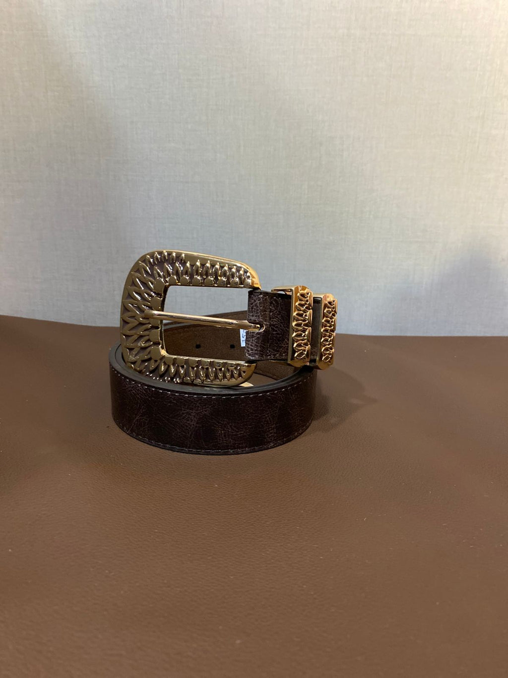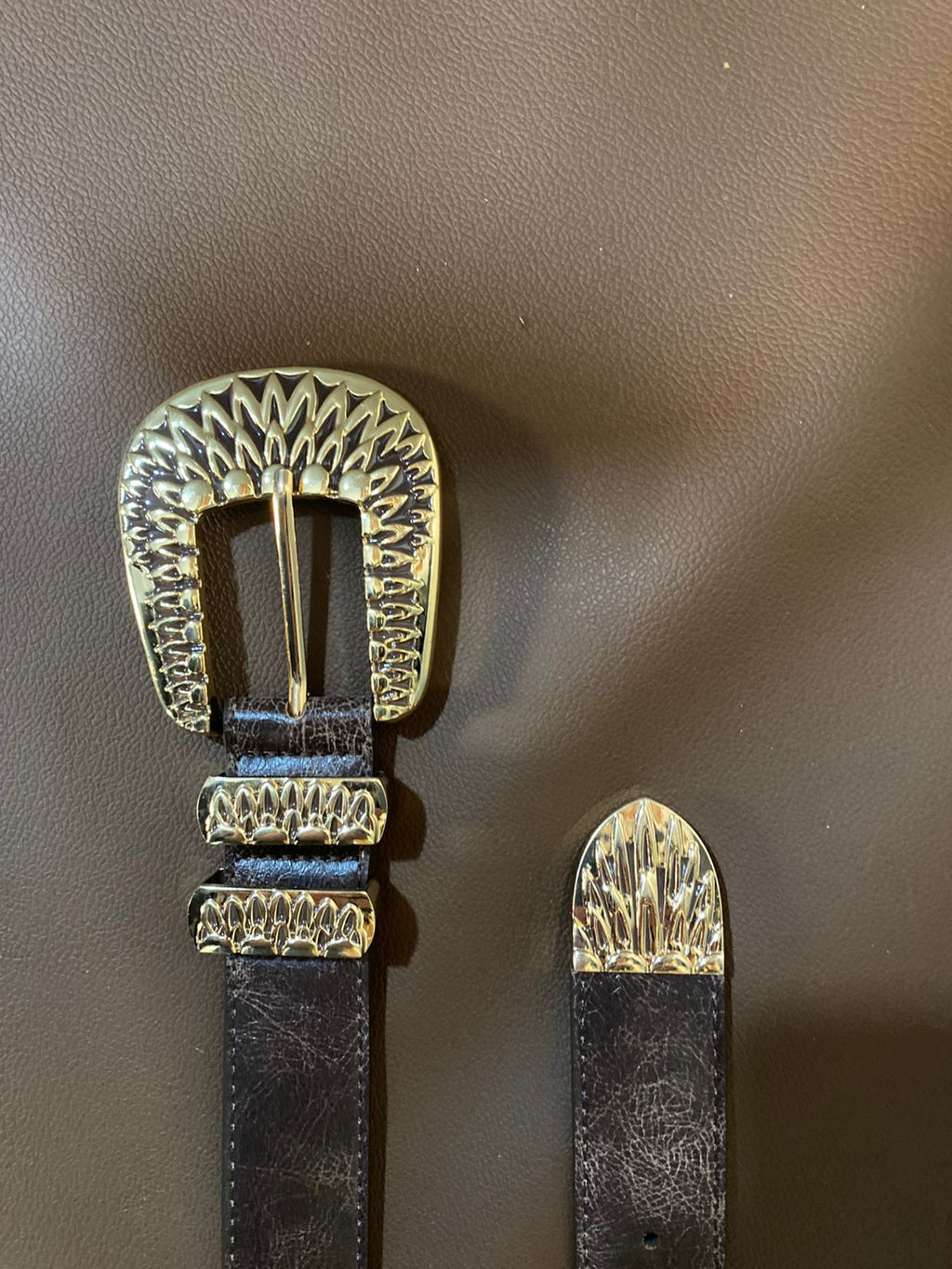Detalhes que Brilham: Cinto de Couro com Fivela e Ponteira Douradas